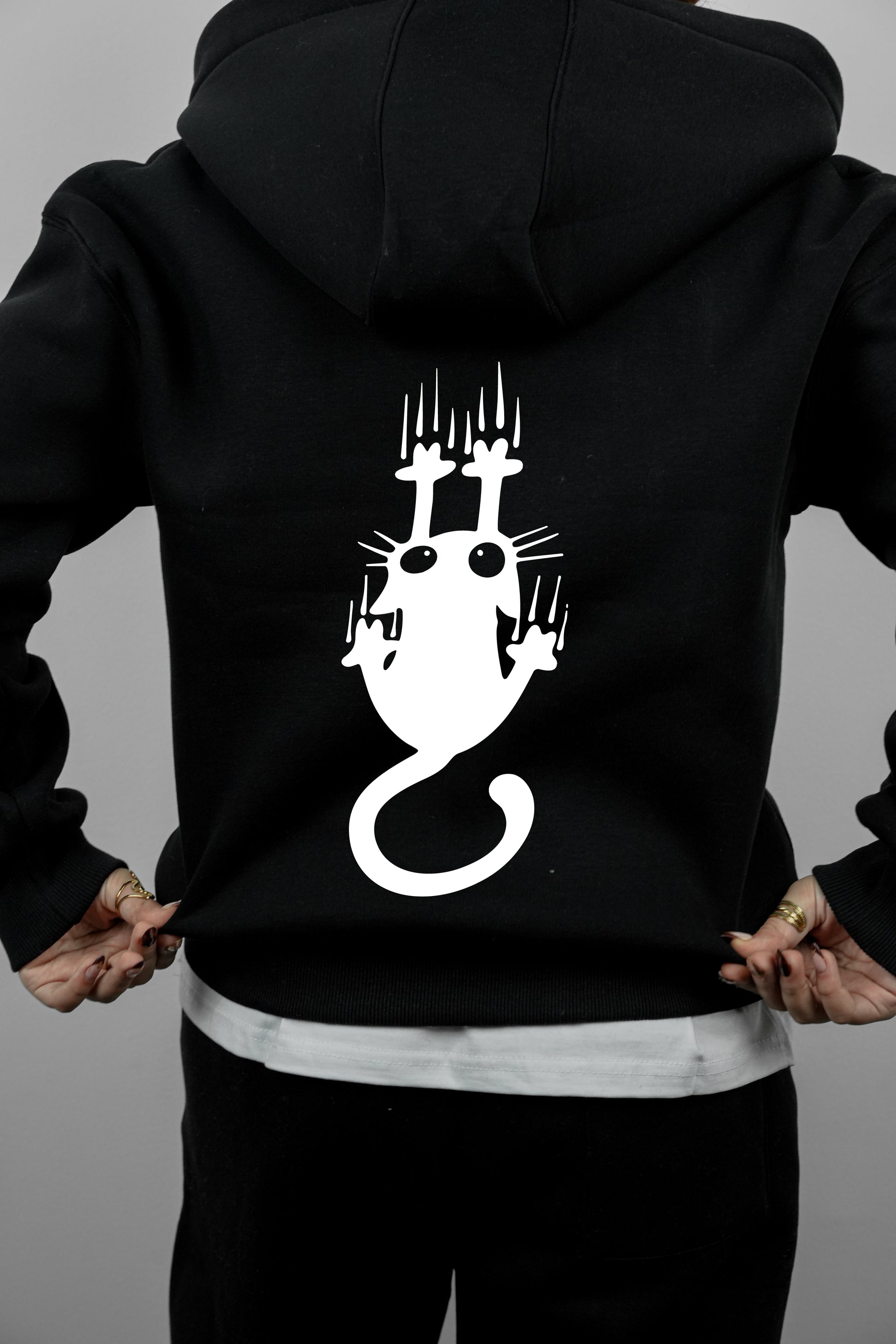 Double-Zip Hoodie –Cat -black